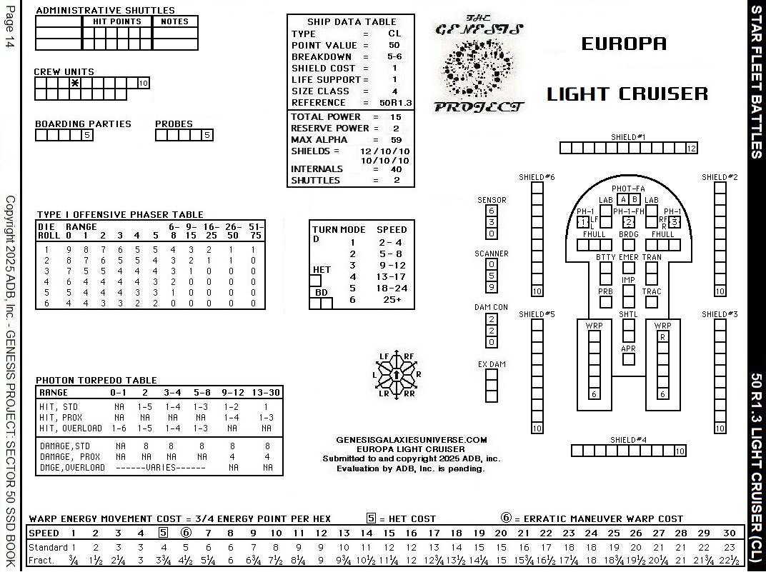 Star Fleet Battles – Europa Light Cruiser SSD Sector 50