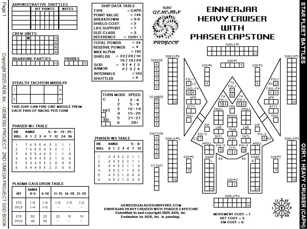 Star Fleet Battles – Einherjar Heavy Cruiser with Phaser Capstone SSD 2nd Omega Project