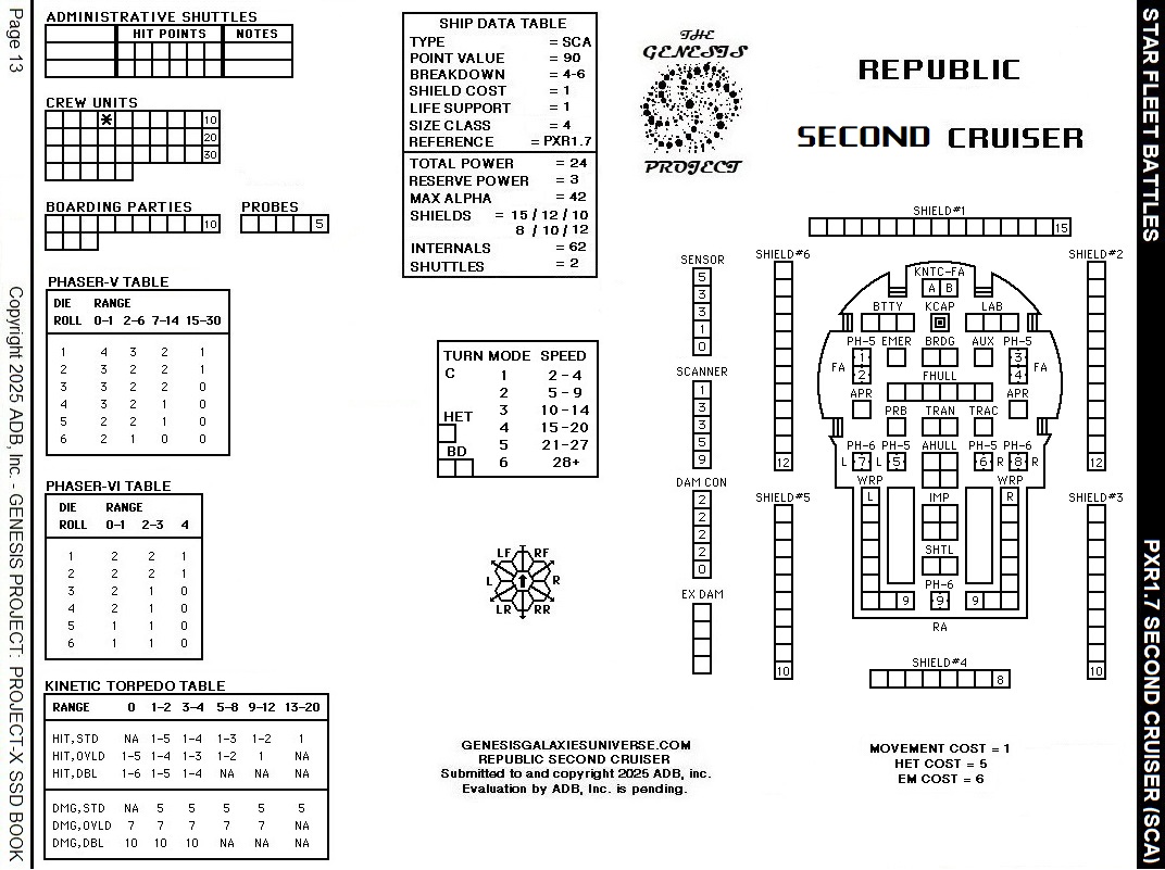 Star Fleet Battles – Republic First Fast Cruiser SSD Project-X