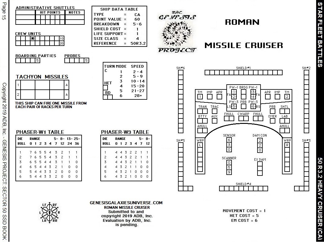 Star Fleet Battles – Roman Missile Cruiser SSD Sector 50