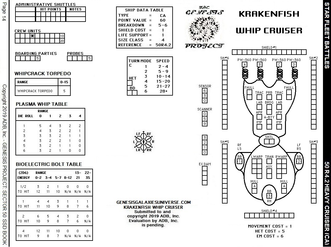 Star Fleet Battles – Krakenfish Whip Cruiser SSD Sector 50