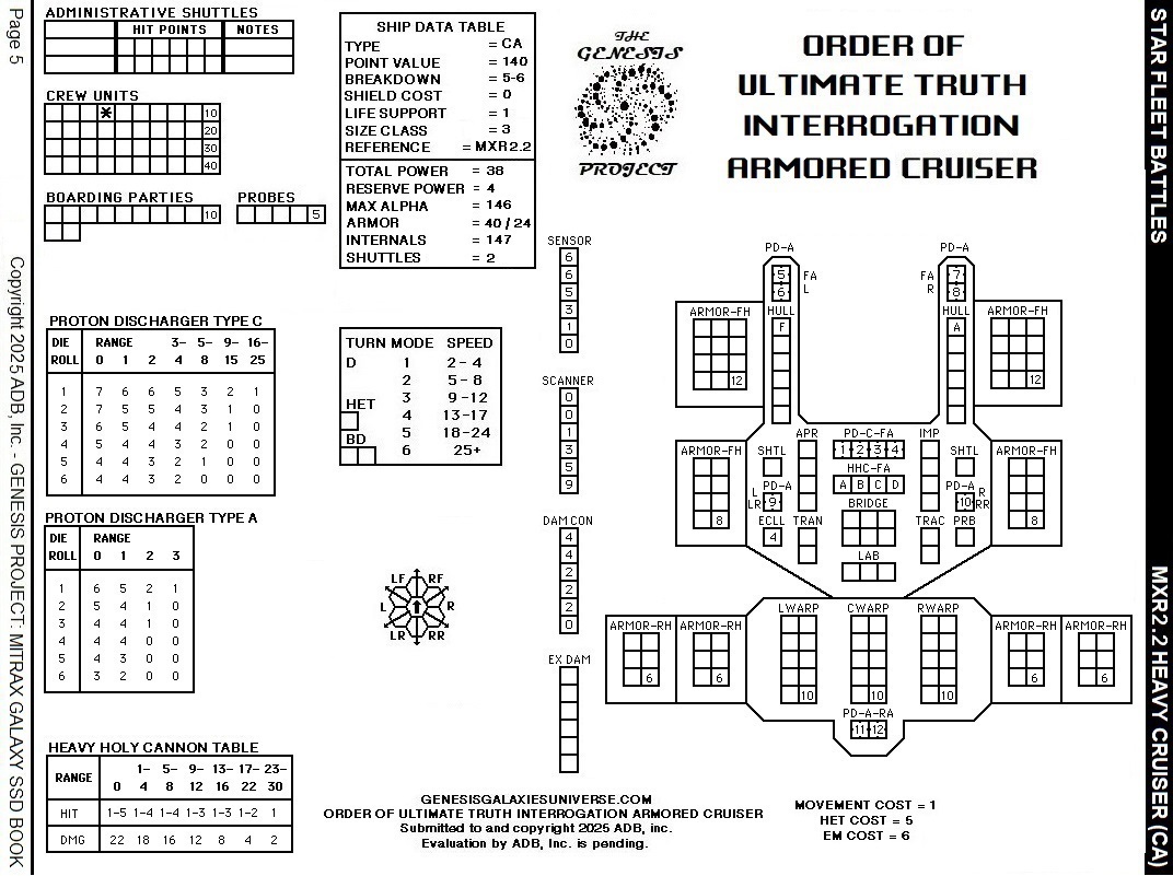 THE MITRAX GALAXY THE ORDER OF ULTIMATE TRUTH SHIPS (MXR2.2) INTERROGATION ARMORED CRUISER (ACA): The Order of Ultimate Truth Interrogation Heavy Cruiser was a heavily armored cruiser that did not possess any shields. Relying completely on armor for protection, the Interrogation Heavy Cruiser carried the exact same weaponry…
